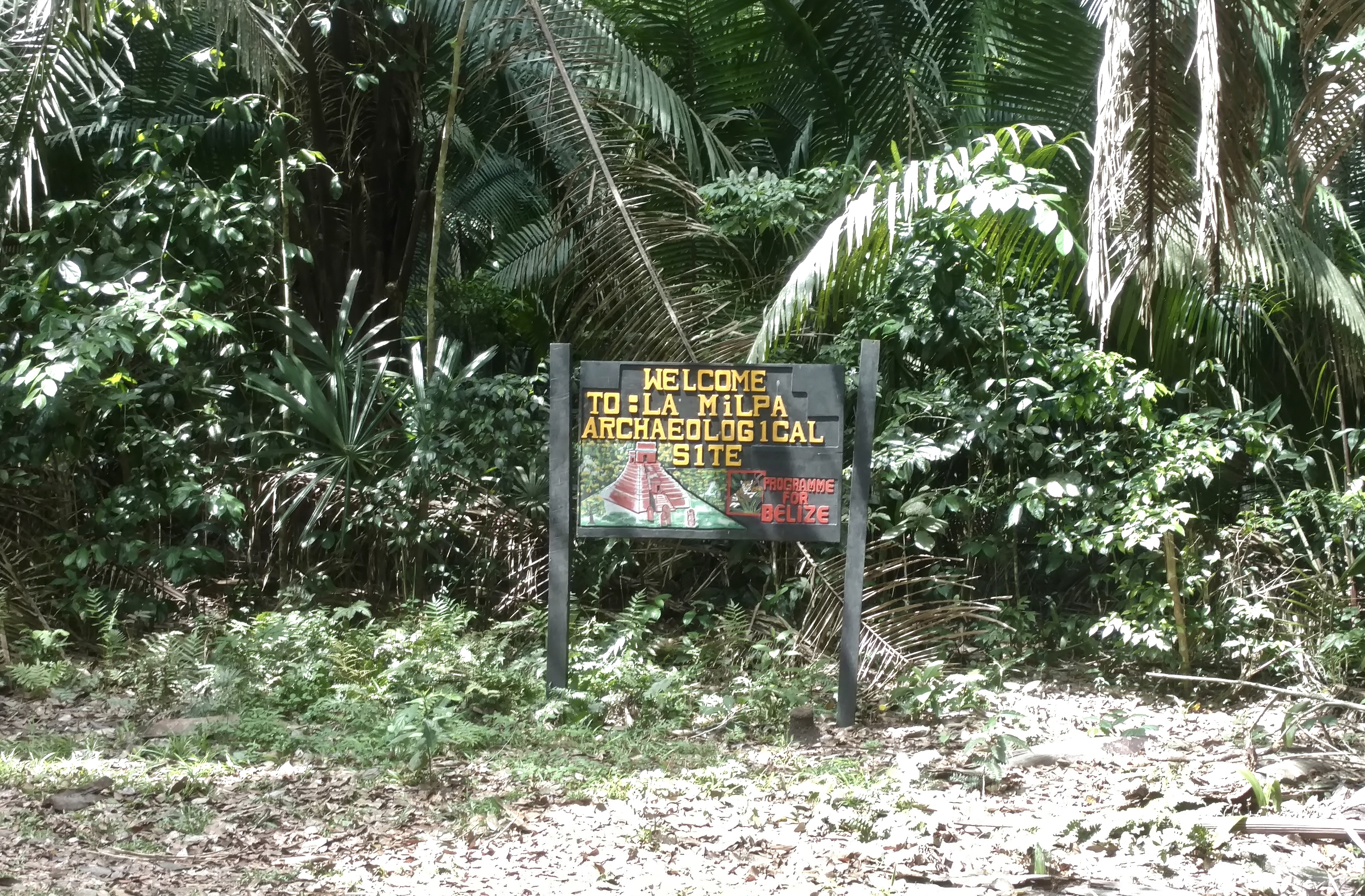 The entrance sign to the La Milpa Archaeological Reserve.